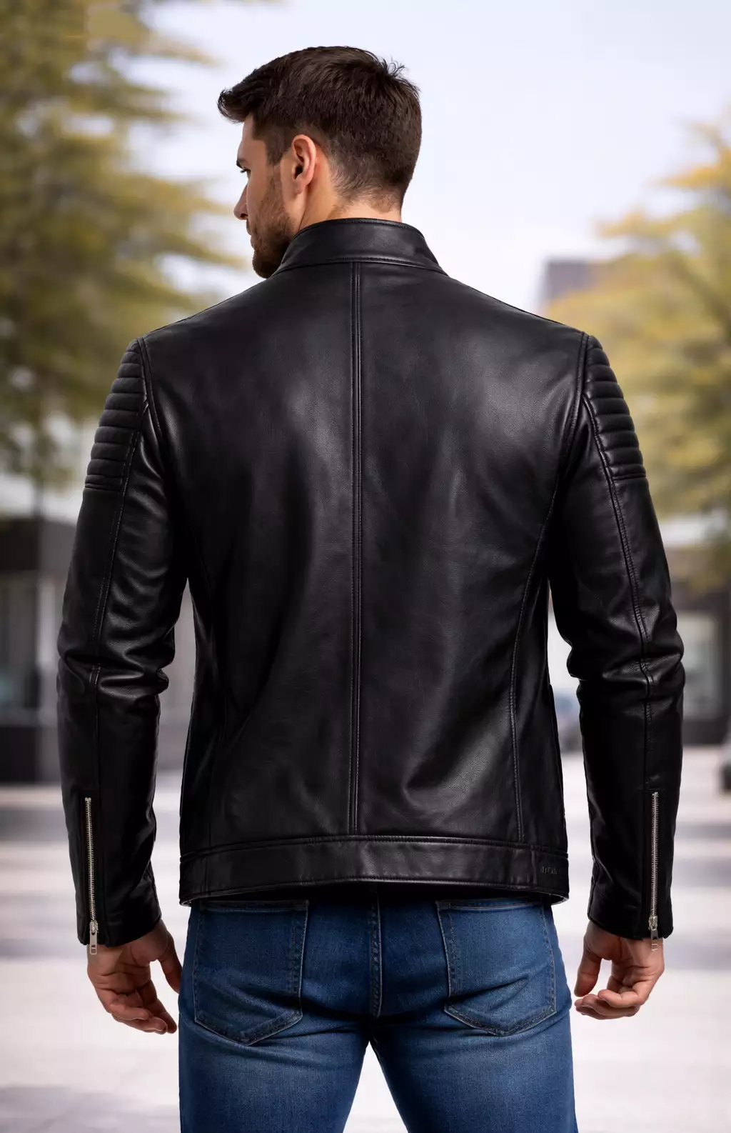Unlike a bomber, this jacket offers a more structured biker fit with premium leather, giving it a rugged and high-end feel.