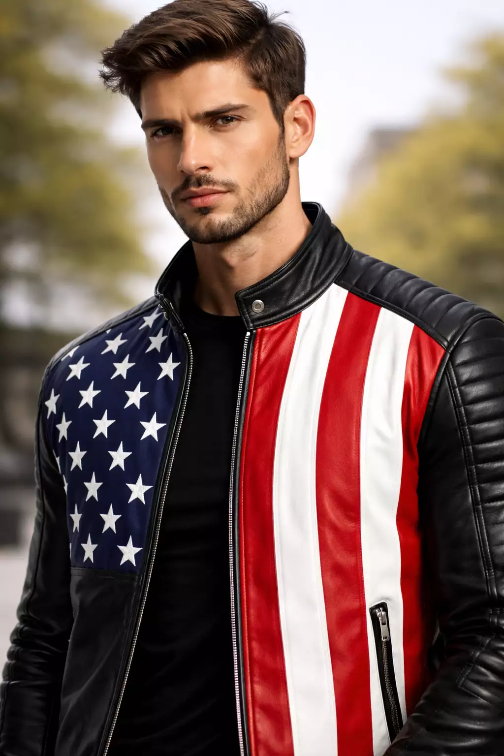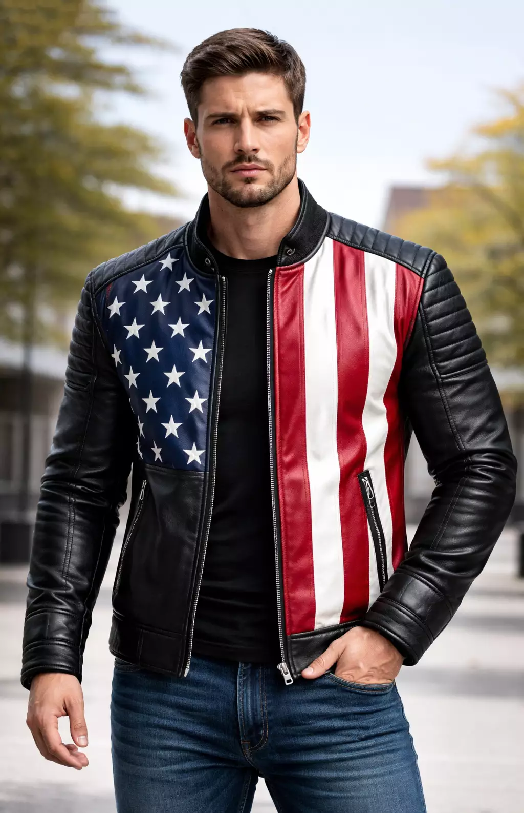 USA Flag Jacket for Men – Premium Leather Biker Style