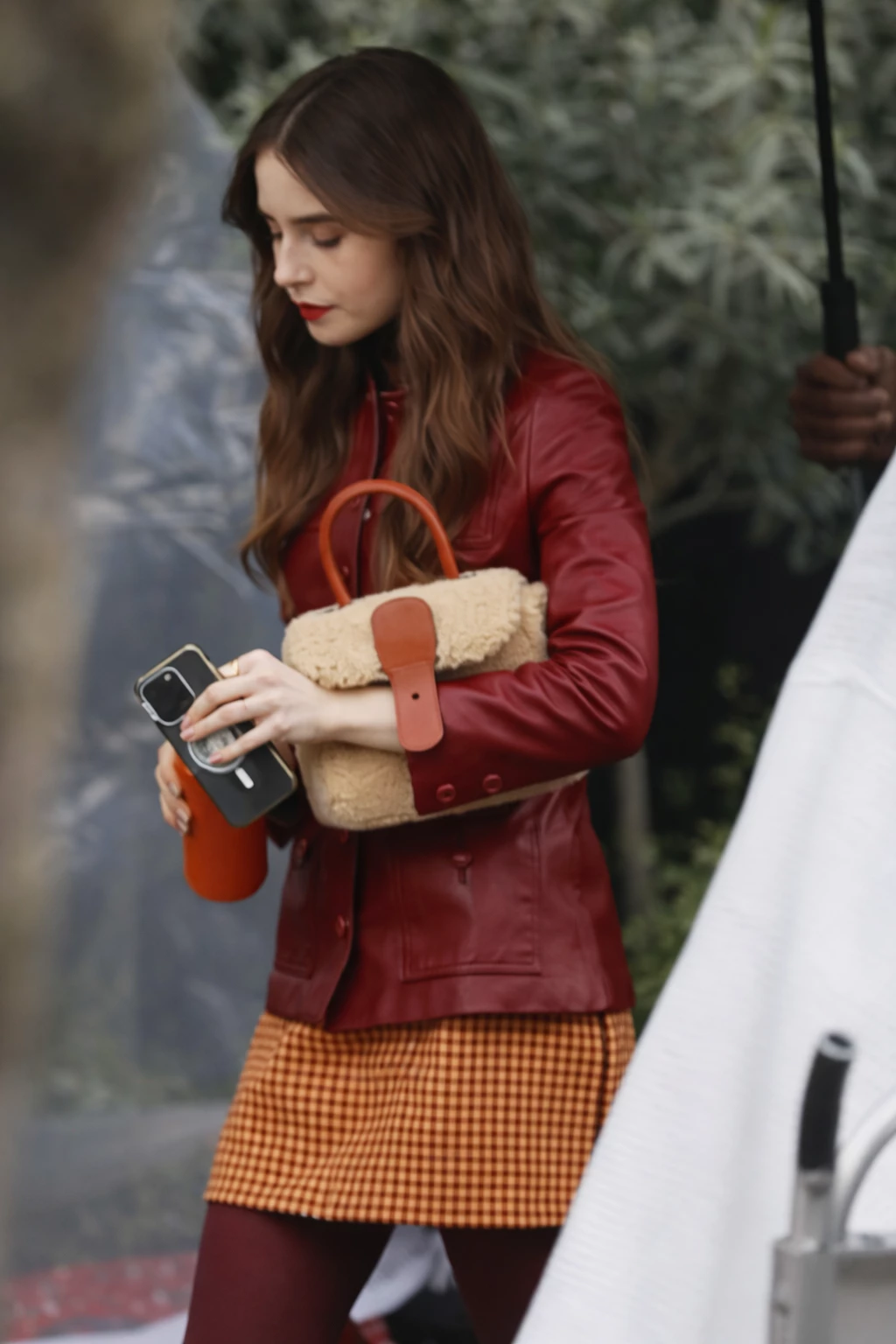 Inspired by Emily in Paris Season 4 Lily Collins Red Leather Jacket