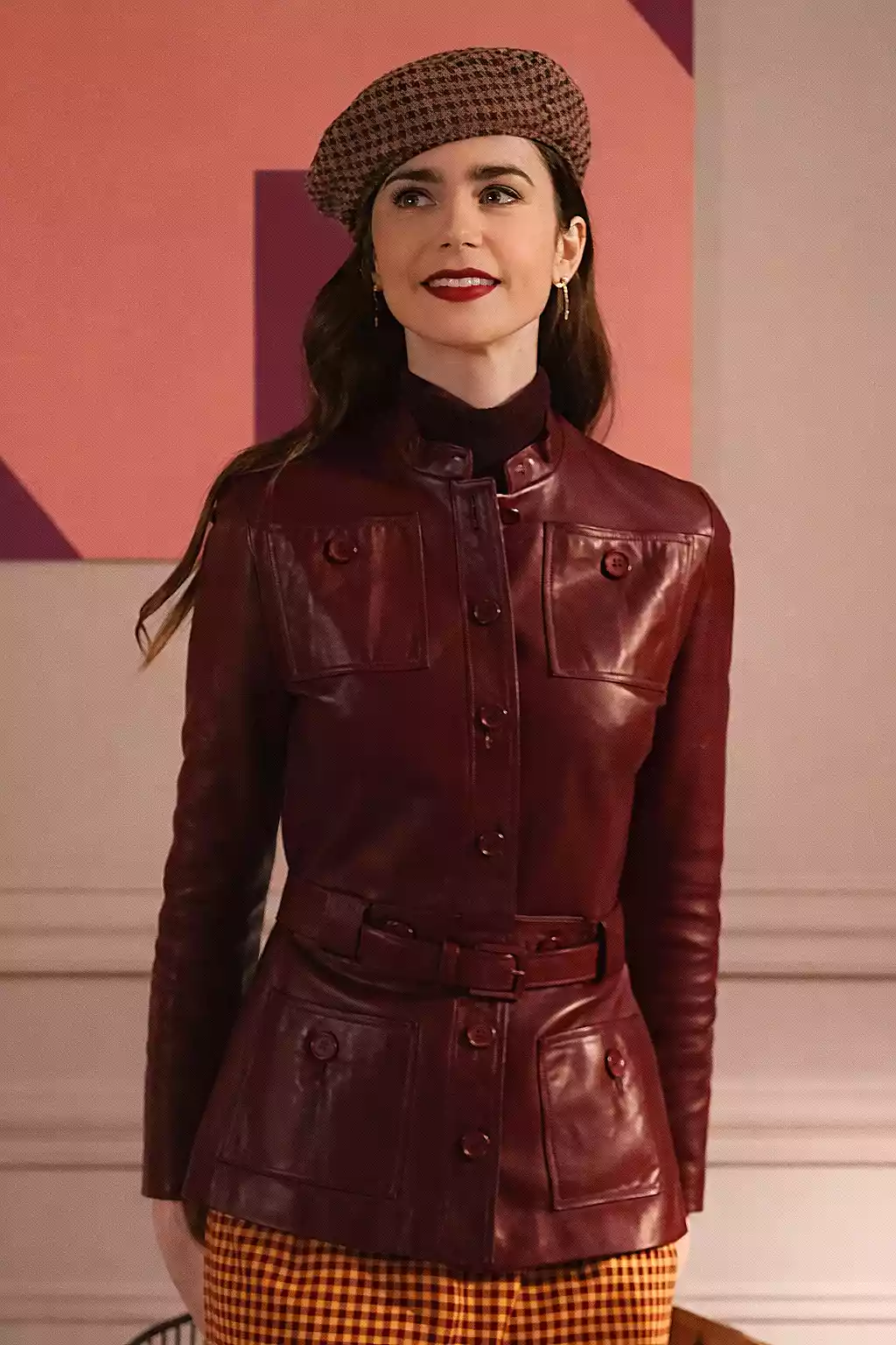 Yes, this jacket is inspired by Lily Collins’ red leather look from Emily in Paris Season 4.