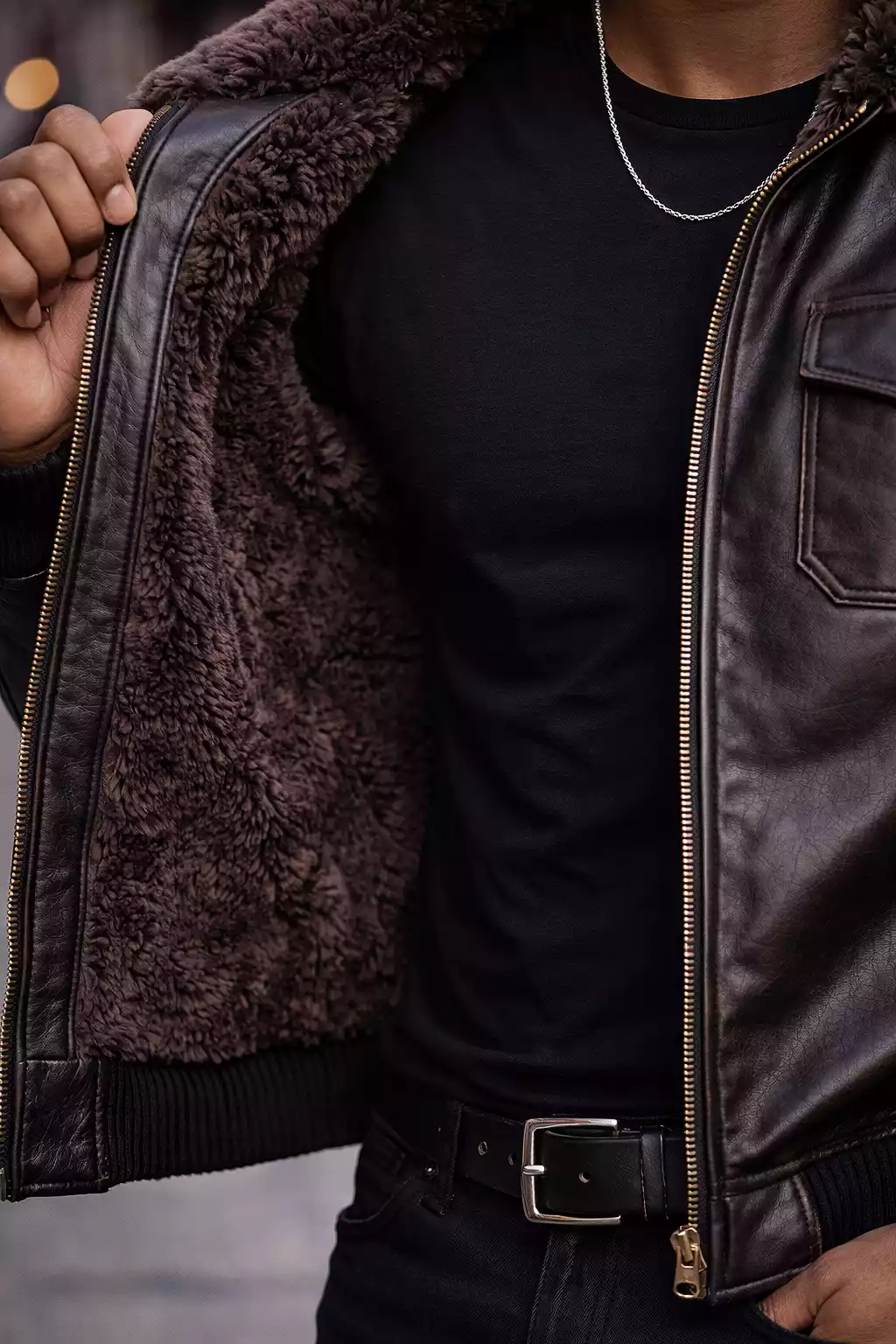 From city streets to open roads, this fur leather jacket men essential adapts effortlessly to your lifestyle.