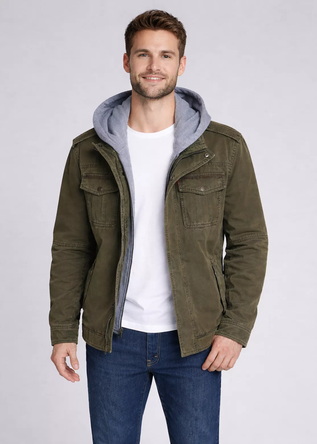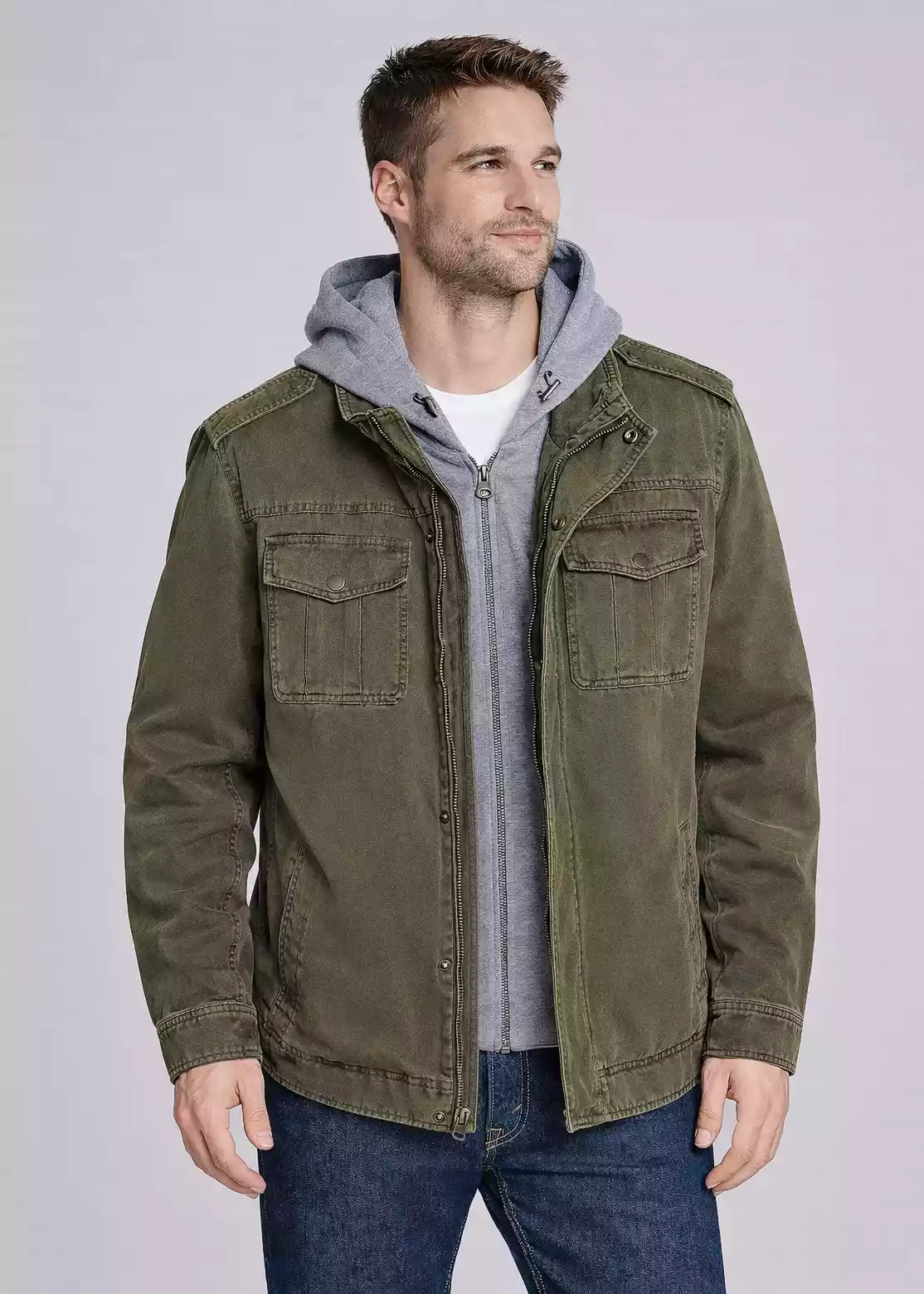 This green jacket men prefer is designed for everyday comfort. The breathable cotton exterior allows year-round wear, while the hooded layer offers added warmth during cooler days.