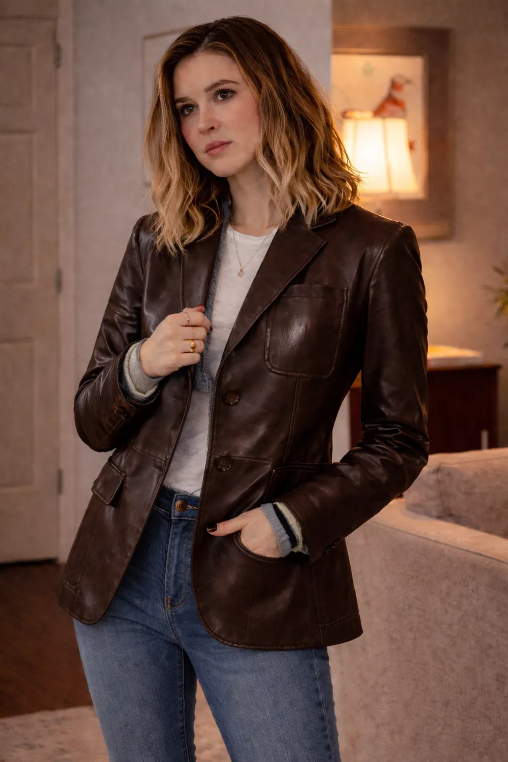 This is more than just a brown blazer jacket women wear—it’s a statement piece that blends cinematic inspiration with real-world practicality.